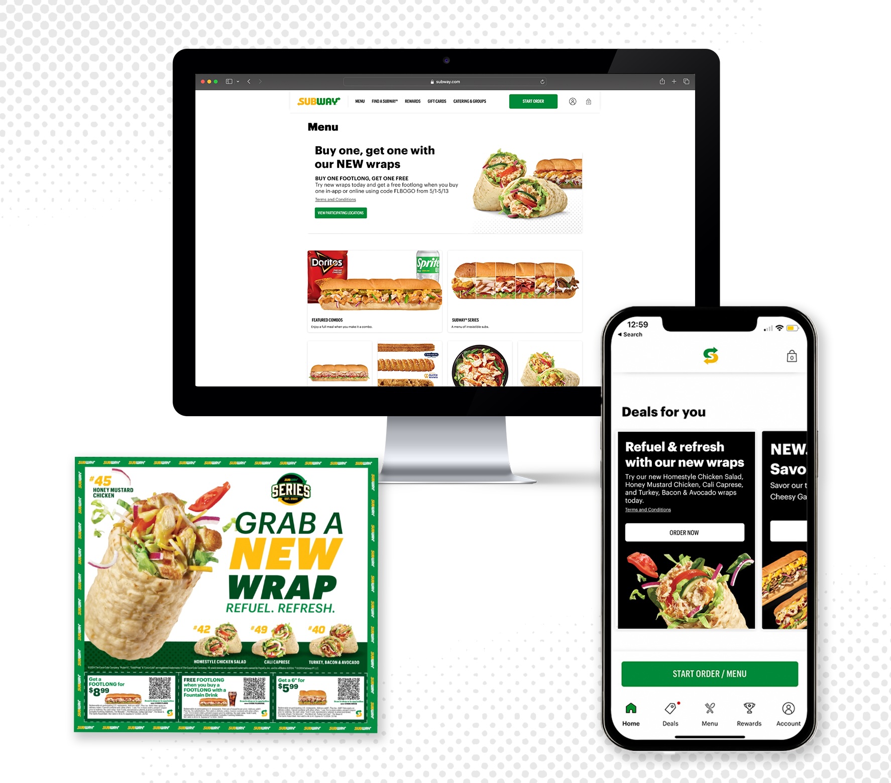 With over 20k+ locations across the nation, each with different store footprints, Subway® needed a path-to-purchase strategy to drive conversion that fit all of them, and we were hungry to deliver. From conducting consumer research to devouring insights and visiting Subway® restaurants all over the country, we developed an in-depth strategy for the consumer purchase journey that delivers the right message, in the right place, at the right time, and works for every store footprint.